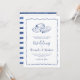 This whimsical coastal wedding invitation features a wavy scallop frame, hand drawn oyster shells, and handwriting script, with watercolor navy blue stripes on the back. It is perfect for Cape Cod weddings, or any east coast wedding on the rocky beaches from Maine to Nantucket and beyond.