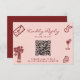 Hand Drawn Pink Burgundy Romantic QR Code Wedding RSVP Card