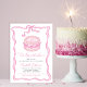 Hand Drawn Pink Cake Pink Bow Birthday Invitation
