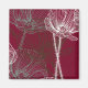 Stylish white and grey hand drawn line drawings of poppies on a dark red background.