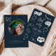 Funky graduation party invitation card featuring hand drawn illustration of graduation and school related icons in navy.