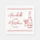 Personalized Hand Drawn Champagne Whimsical Wedding Napkins. This personalized wedding cocktail napkin features a charming and minimalist design, perfect for adding a special touch to your celebration. A delicate illustration of a champagne bottle and glass is prominently displayed, symbolizing the festive occasion. The bride and groom's names and wedding date are elegantly showcased beneath the artwork in a mix of handwritten script and simple font, creating a stylish yet approachable look. Styled in a timeless red and white palette reminiscent of Italian, French, and European aesthetics, this design adds an extra layer of elegance.