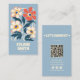 Hand Drawn Retro Blue QR Code Boho Floral Trendy Business Card