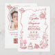 Hand Drawn Retro Whimsical Burgundy Wedding Photo Invitation