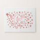 Hand-Drawn Romantic Line Art Face with Hearts and Jigsaw Puzzle