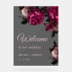 This dark romantic wedding welcome board features pink hand drawn vintage roses on a transparent background.