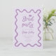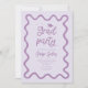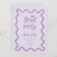 Funky graduation party invitation card featuring hand drawn squiggly and wavy frame. Purple background.
