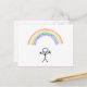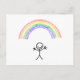 Hand drawn stick man under a rainbow postcard