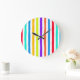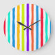 Hand-drawn stripes in bright pop art colours large clock