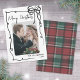 The back has a rustic red and green tartan plaid pattern, adding a warm, cozy touch to your holiday greetings. Available as a printed card or digital file for easy mailing, sharing online, or local printing.