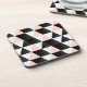 This abstract geometric features a pattern in black, white and pastel pink.