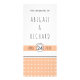 Introducing our budget-friendly wedding program with a charming hand-drawn typography and a delightful peach pattern. At the bottom, you'll find a beautiful combination of white and peach geometric shapes, adding a touch of elegance to the design. To make it even more special, we've included a banner showcasing the wedding date, while the couple's names are gracefully written in a whimsical hand-drawn style typography, giving it a personalized and unique feel.
