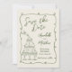 Hand-Drawn Fun Swirling Frame Save the Date Card with Vintage Sage Green Background. This whimsical and creative save the date card is perfect for couples wanting to set a playful, lighthearted tone for their upcoming wedding while adding a touch of vintage charm. Designed with a soft sage green background, the card features a swirling frame with charming heart details that encircle your wedding information, presented in a delightful mix of script and handwritten-style fonts for a casual yet elegant feel.
