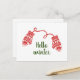 Christmas and New Year postcard. Winter holiday illustration with red mittens and text "Hello winter".
