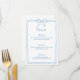 Set the tone for an elegant wedding with this refined blue menu featuring a delicate bow illustration and scalloped border. This timeless design is perfect for Something Blue, French Vintage, Coastal Chic, or Old Money-inspired weddings and events. Customizable for weddings, bridal showers, and upscale dinner parties.