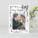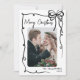 Send holiday cheer with this vertical Christmas card design. The front features a vertical photo in the centre, framed by a swirling ribbon-style doodle border. A cute hand-drawn coquette bow sits in the top right corner, while “Merry Christmas” appears in a handwritten script at the top left. The bottom right includes space for your family’s last name or individual names, along with the year. The background is white, with the doodle art and fonts in black for a fun retro look.