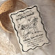 We are over the moon wedding invitation, whimsical hand drawn illustrations showing a bride and groom setting a flag to their future.