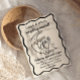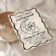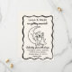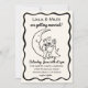 We are over the moon wedding invitation, whimsical hand drawn illustrations showing a bride and groom toasting to their happiness.