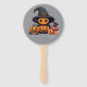HALOWEEN Quartet Pumpkins. You can personalise the image's size, background colour, and texts (words & colours) on both front and back sides. This hand fan can be used by children as 'magic wand' to ask "Trick or Treat?".