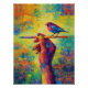 Vibrant and symbolic oil painting of an artist's hand holding a paintbrush with a colorful bird perched on it, set against an explosive abstract background of rainbow brushstrokes. Represents creativity, inspiration, and the joy of art. Perfect motivational wall art for studios, offices, classrooms, or creative homes seeking bold, uplifting energy. High-quality print captures the rich texture and vivid colors.