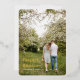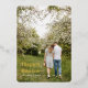 Welcome the joy of Easter with this beautiful Hand-Lettered Gold Script Photo Easter Foil Holiday Card. This stunning card features a beautiful romantic couple walking on a farm full of blossoming trees and foliage. Customize this card with your own photo and name to make it a truly one-of-a-kind personalized greeting. Perfect for sending Easter wishes to your loved ones, this card is sure to make a lasting impression.