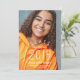 Trendy hand lettered overlay graduation announcement with single photo and party invitation on back. Easy and affordable do-it-yourself template. Add your own photos and custom text, or choose "Customize It" to change the layout, size, style or photo options. Optional hand-drawn stripes backer can be altered if you wish to add more photos, future plans, a thank you message, or graduation party information.