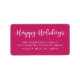 Hand lettered Happy Holidays script, address labels. Features, white lettering on bright pink background.