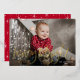 Modern Christmas photo card featuring "Merry & Bright" displayed in a hand-lettered gold foil script overlaying your horizontal photo. Personalize the front of the foil merry and bright card with your family name and the year. The card reverses to a festive red and white star pattern.