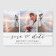 Pick the best pictures from your engagement shoot or your favourite pictures of the two of you for this perfect save the date. The words save the date are handwritten to give a personal feel to the card. The front has 3 images and the back has a large image with a white filter on top.