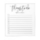 Modern personalized note pad and features "things to do" at the top in handwritten style lettered typography. Personalize with your name or leave blank if desired. 14 lines with checkboxes help you track all of the important tasks that you need to get done! Bizzy Bee Creation ©