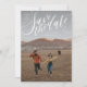 This save the date features hand lettered "save the date" over a vertical photo. This template also has a backer design for an optional additional photo and details like your wedding website. The charcoal colour on the back can be changed to any colour you'd like in the customization window!