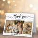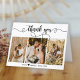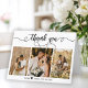 Modern, Elegant Hand Lettered Wedding Photo Thank You Folded Card. Stylish thank you card template featuring (3) three photo on the front and one photo inside. With the text "Thank you" in a swirly hand lettered typography script font with swash in black colour on white background. Personalize your name and thank you message. Little heart between the names. If you prefer to handwrite your note, just delete the sample text to make more space. If You need help or matching item, please message designer!