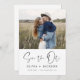 Modern and Elegant Photo Save the Date Wedding Card. The save the date invitation card includes white Hand Lettered typography and chic and simple design on a white background that you can add your customized engagement photograph picture to.