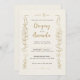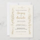Featuring hand-painted gold leaves and flowers, this wedding invitation has a whimsical design with customizable black and gold typography on a cream paper texture background.