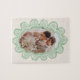 Hand-painted green scalloped oval photo frame jigsaw puzzle