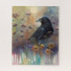 Hand Painted Raven with Wildflowers Jigsaw Puzzle