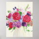 hand painted red rose magenta hydrangea bouquet watercolour painting