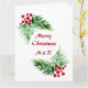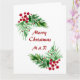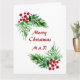 Hand Painted Watercolor Pine Wreath, Red Berries Card