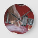close-up photograph of hand playing a red six string electric guitar near the first pickup. Great design for any time you need to buy a musical photograph, add your own text for a custom guitar design! (c) Susan L. Marsh