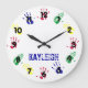 This adorable clock will look great anywhere! Features different handprints at each of the numbers in vibrant colours and personalized with your choice of names. Great for a child's room, for an art teacher and more!