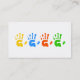Simple graphic illustration of four colourful hand prints in different colours. The four different colours can represent child diversity and working together. Image available on various gifts and products.