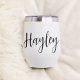Get the party started with these beautiful personalized wine tumblers that are perfect for bachelorette parties, bridesmaids, or any occasion! Design features a name in black handwritten style cursive script typography.