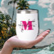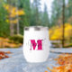 Keep your drink refreshingly cold with this stylish stainless steel wine tumbler featuring your first name in chic lettering over your first or last name large initial. Great to sip hot drinks, too!