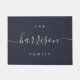 A great gift for newlyweds or new homeowners, our personalized welcome doormat in chic, classic navy blue features your family name or surname in hand lettered script typography.