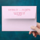 A retro modern hand written bright colourful wedding envelope. Which features sketchy hand lettered bride and groom's names in red magenta colour. And personalized return address . On simple blush pale vintage colour background. Which suits the whole wedding suite.