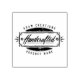 Handcrafted Label Rubber Stamp features a hand lettered typography of 'Handcrafted' in a label design. Product includes a template to customize with your name or company and handcrafted product.