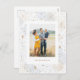 This New Years photo card features a hand-drawn fireworks border in white, blue and gold tones. The back is setup as a postcard for easy mailing.