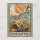 Digitally restored lithograph poster from 1909. A woman rows her boat through rough waves while a man sails leisurely by with his sail representing the right to vote. This poster by Duncan Grant won the 1909 competition by the Artists' Suffrage League.