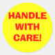 These yellow large round shipping warning labels have "HANDLE WITH CARE!" in large red font. This design can be purchased as-is or you can use it as a template to make your own shipping label design.
