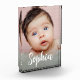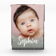 Modern Handlettering Script Baby Girl Name Vertical Photo Block - When we started having children my parents and in-laws kept asking for more photos of the baby. It's one thing to send them digital images, but a framed keepsake with a beautiful shot and baby's name is another. I was inspired to design this baby photo block for all the proud parents, godparents, uncles, aunts and grandparents out there. Display this elegant gift on your desk or mantel. Personalize baby's name and photo.